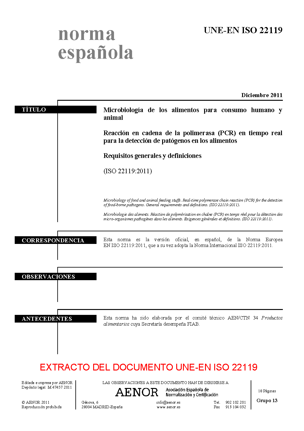 | Publisher | Asociacion Espanola de Normalizacion y Certificacion (AENOR) |