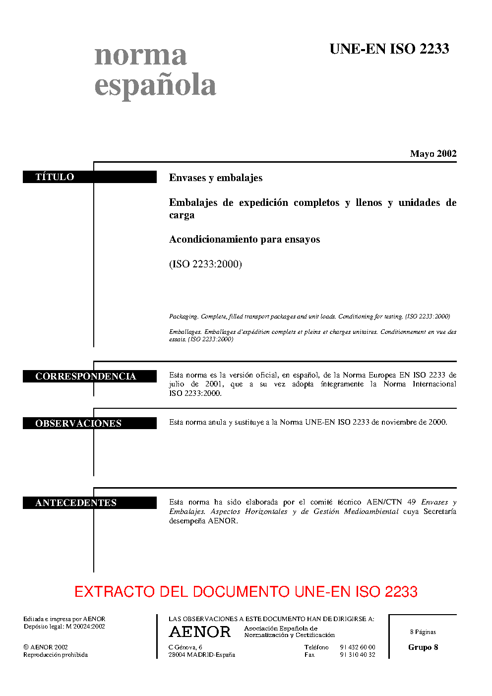 UNE-EN ISO 2233:2002