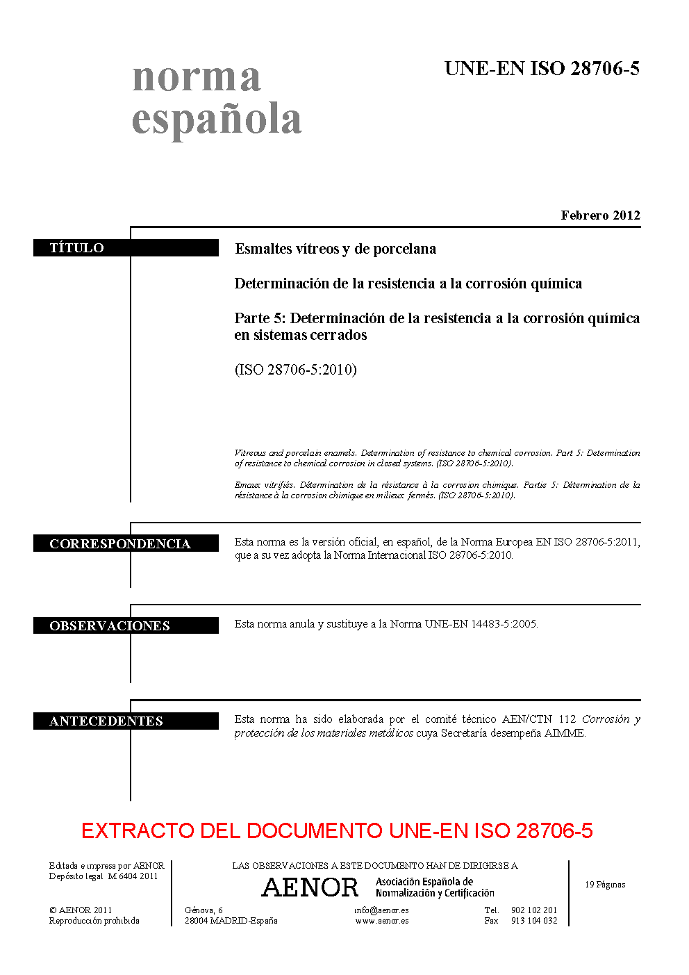 | Publisher | Asociacion Espanola de Normalizacion y Certificacion (AENOR) |