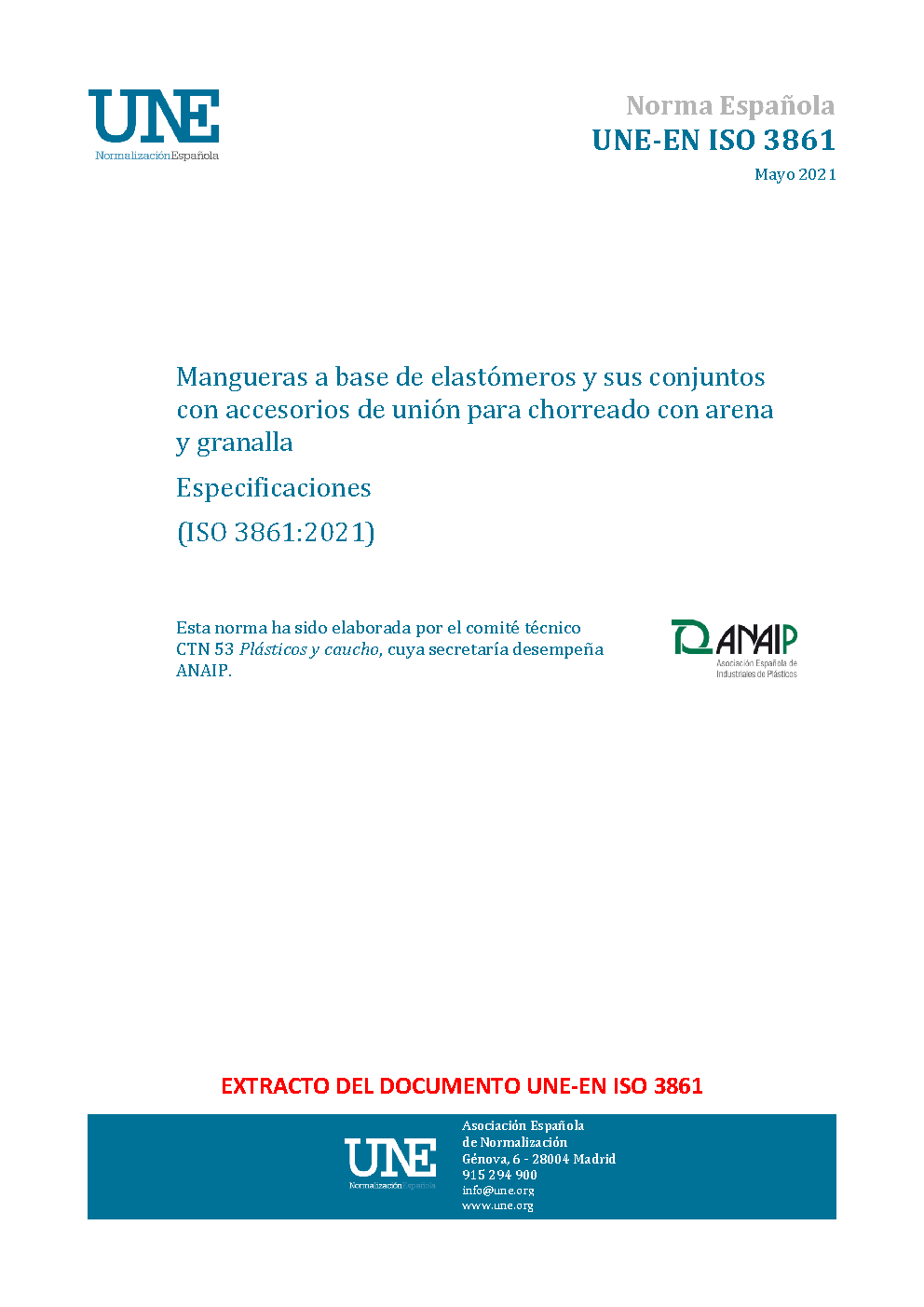 RUBBER HOSES FOR SAND AND GRIT BLASTING. SPECIFICATION. (ISO 3861:1995).