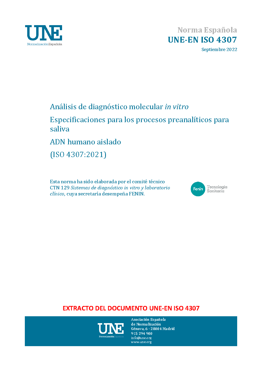 Molecular in vitro diagnostic examinations - Specifications for pre-examination processes for saliva - Isolated human DNA (ISO 4307:2021)