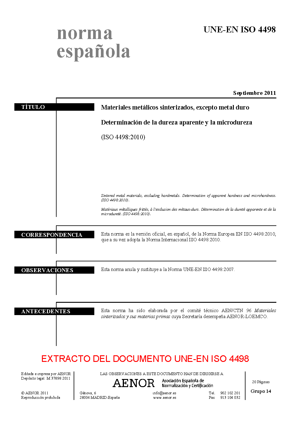 UNE-EN ISO 4498:2011