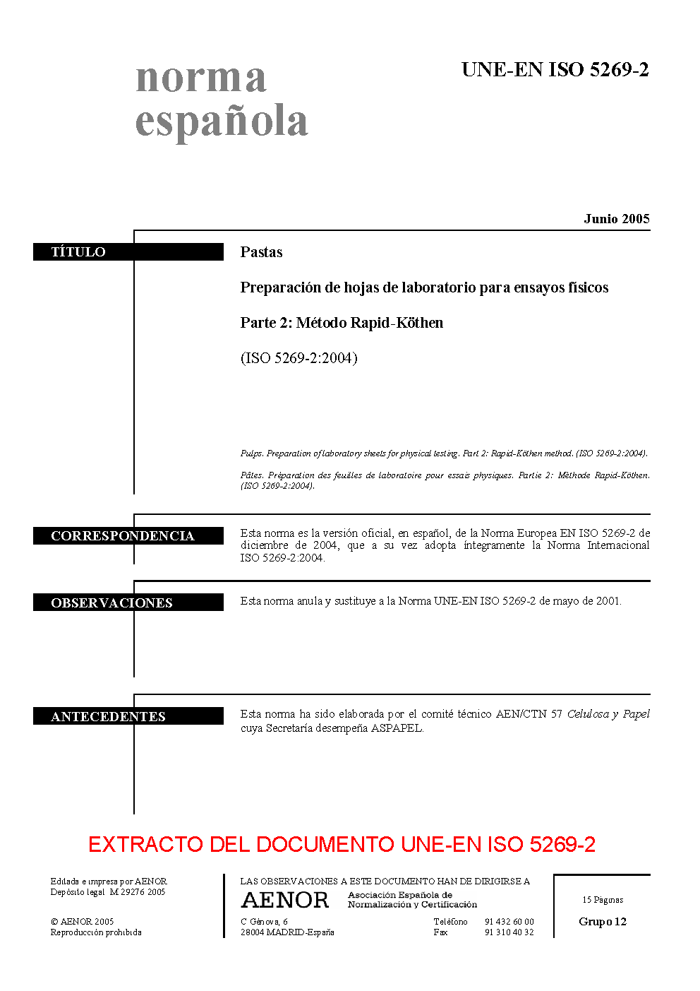 | Publisher | Asociacion Espanola de Normalizacion y Certificacion (AENOR) |