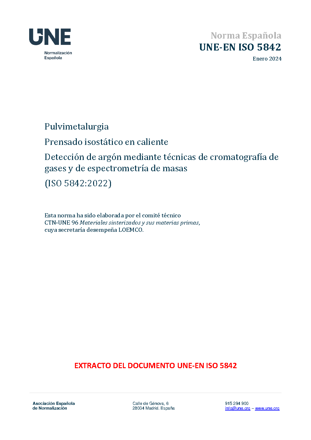 Powder metallurgy - Hot isostatic pressing - Argon detection using gas chromatography and mass spectrometry techniques (ISO 5842:2022)