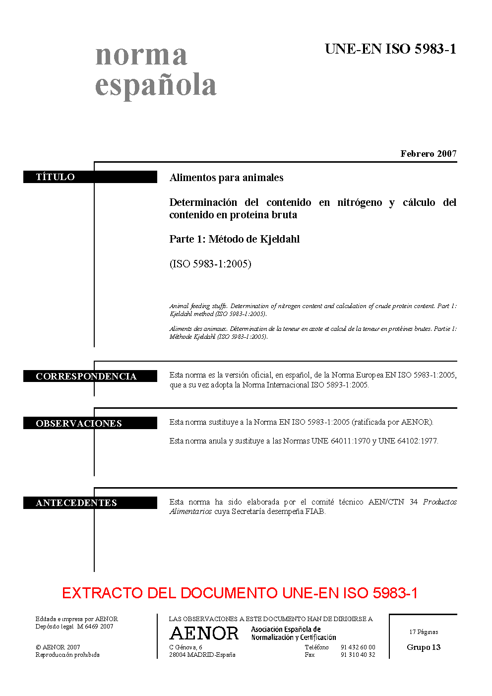 | Publisher | Asociacion Espanola de Normalizacion y Certificacion (AENOR) |