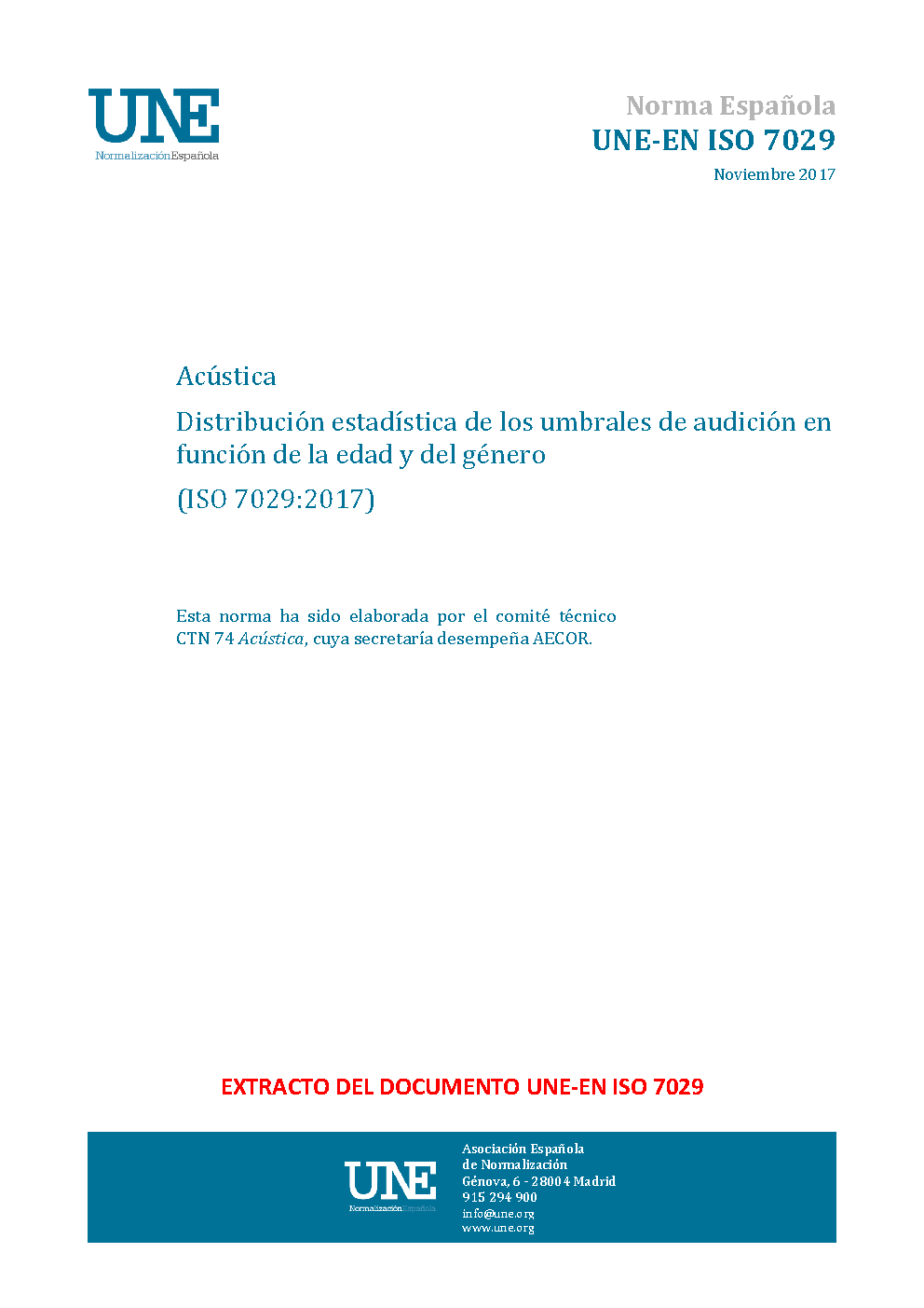 Acoustics - Statistical distribution of hearing thresholds related to age and gender (ISO 7029:2017)