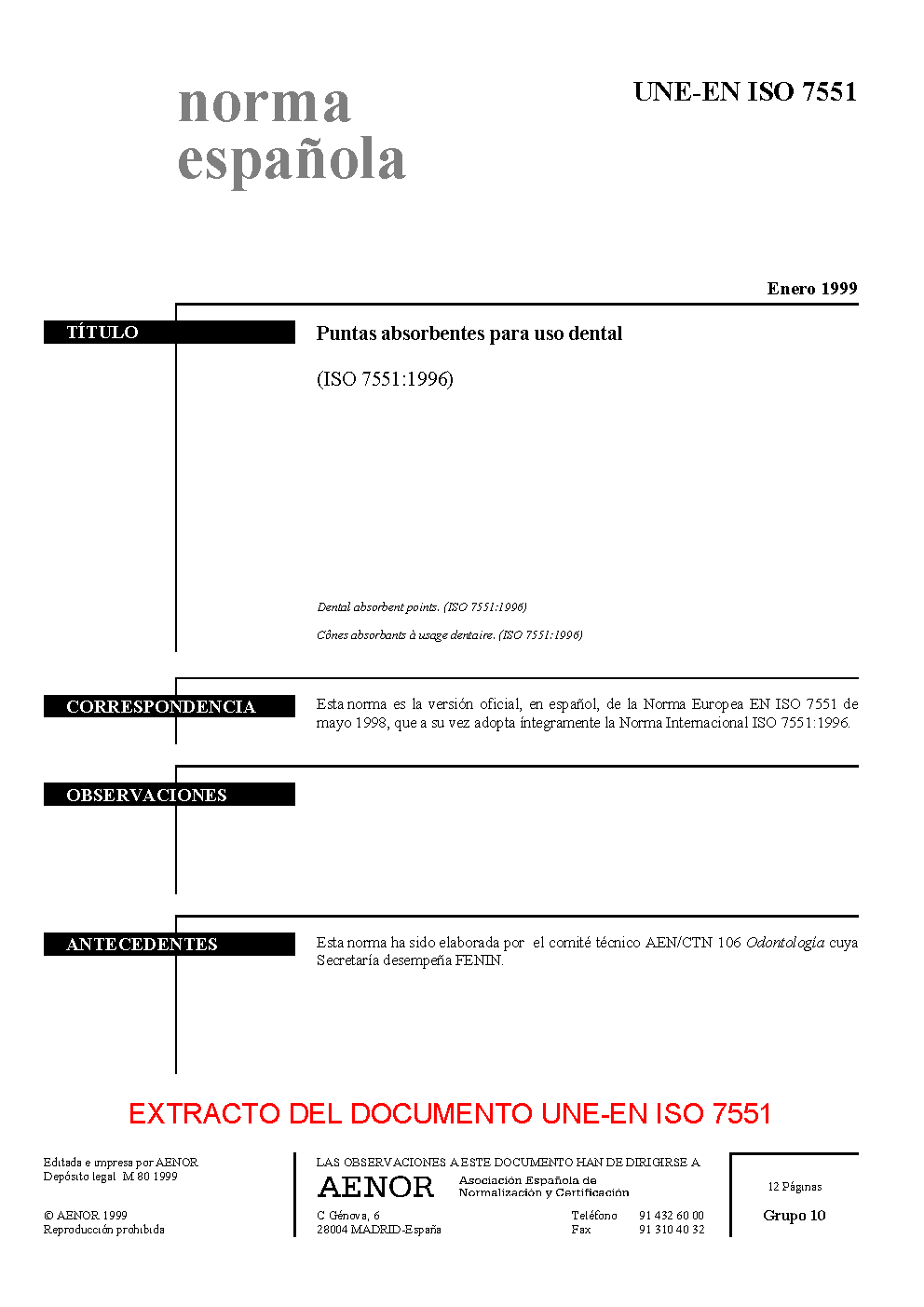 DENTAL ABSORBENT POINTS. (ISO 7551:1996).
