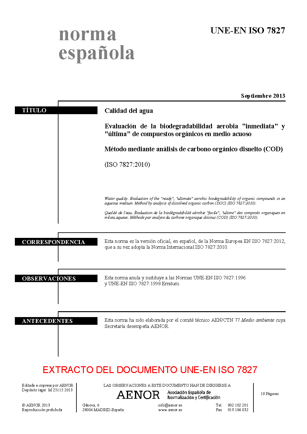 | Publisher | Asociacion Espanola de Normalizacion y Certificacion (AENOR) |
