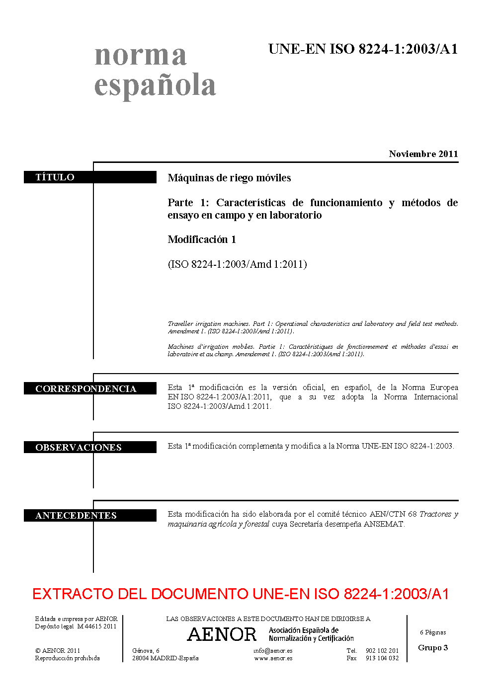 | Publisher | Asociacion Espanola de Normalizacion y Certificacion (AENOR) |