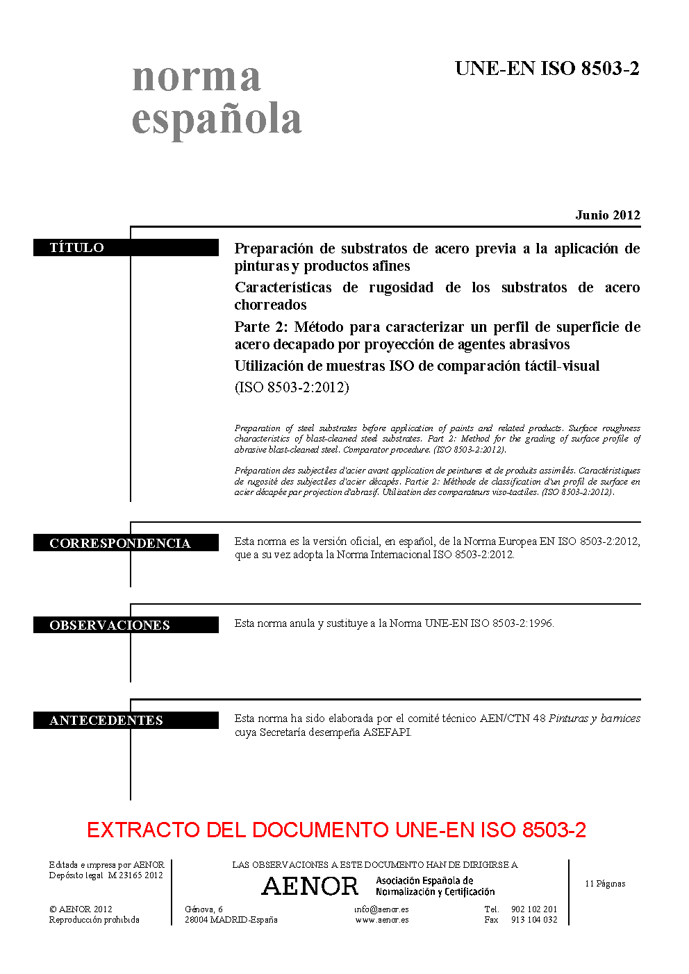 | Publisher | Asociacion Espanola de Normalizacion y Certificacion (AENOR) |