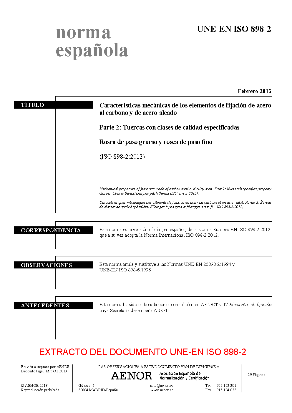 | Publisher | Asociacion Espanola de Normalizacion y Certificacion (AENOR) |