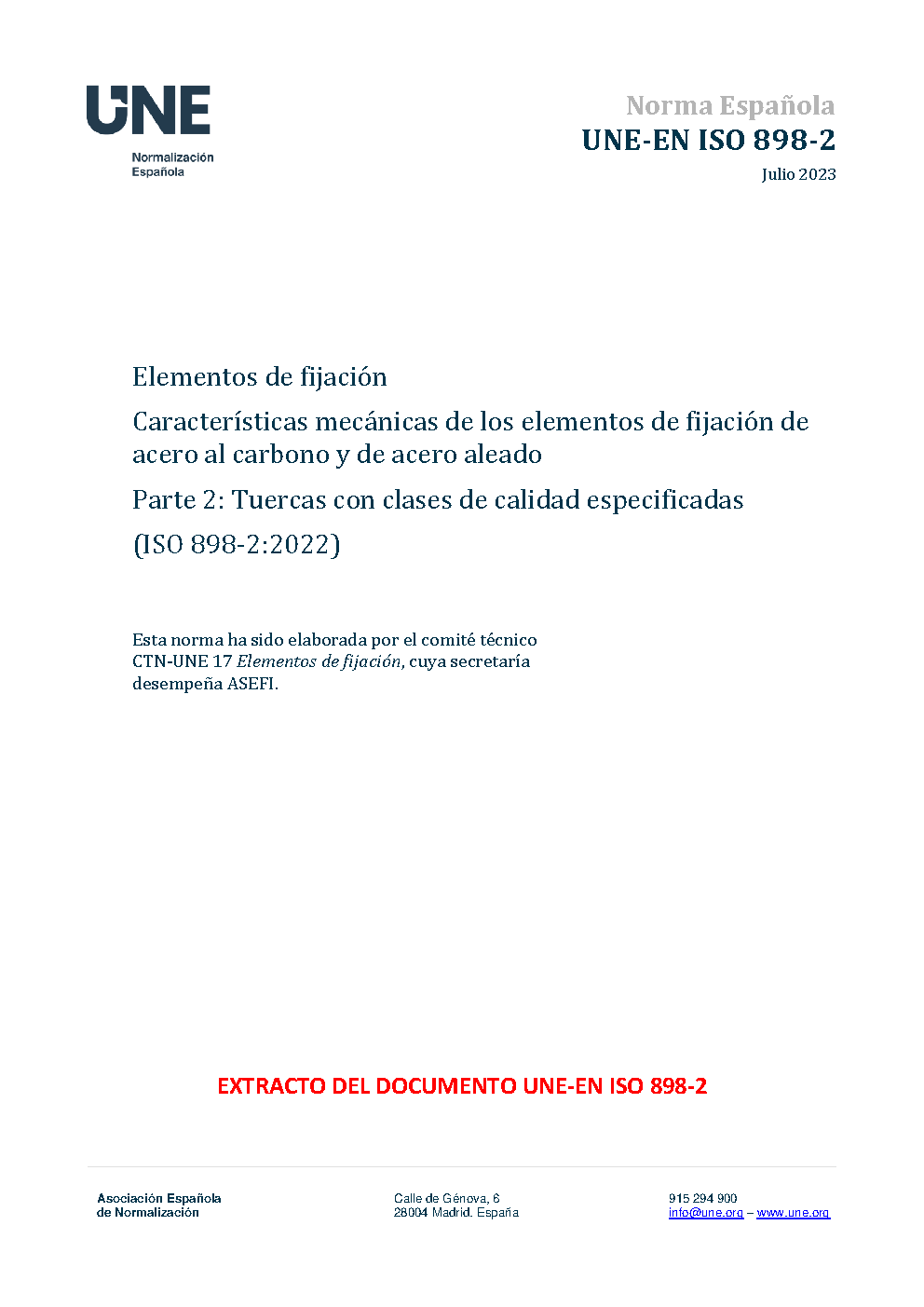 UNE-EN ISO 898-2:2013