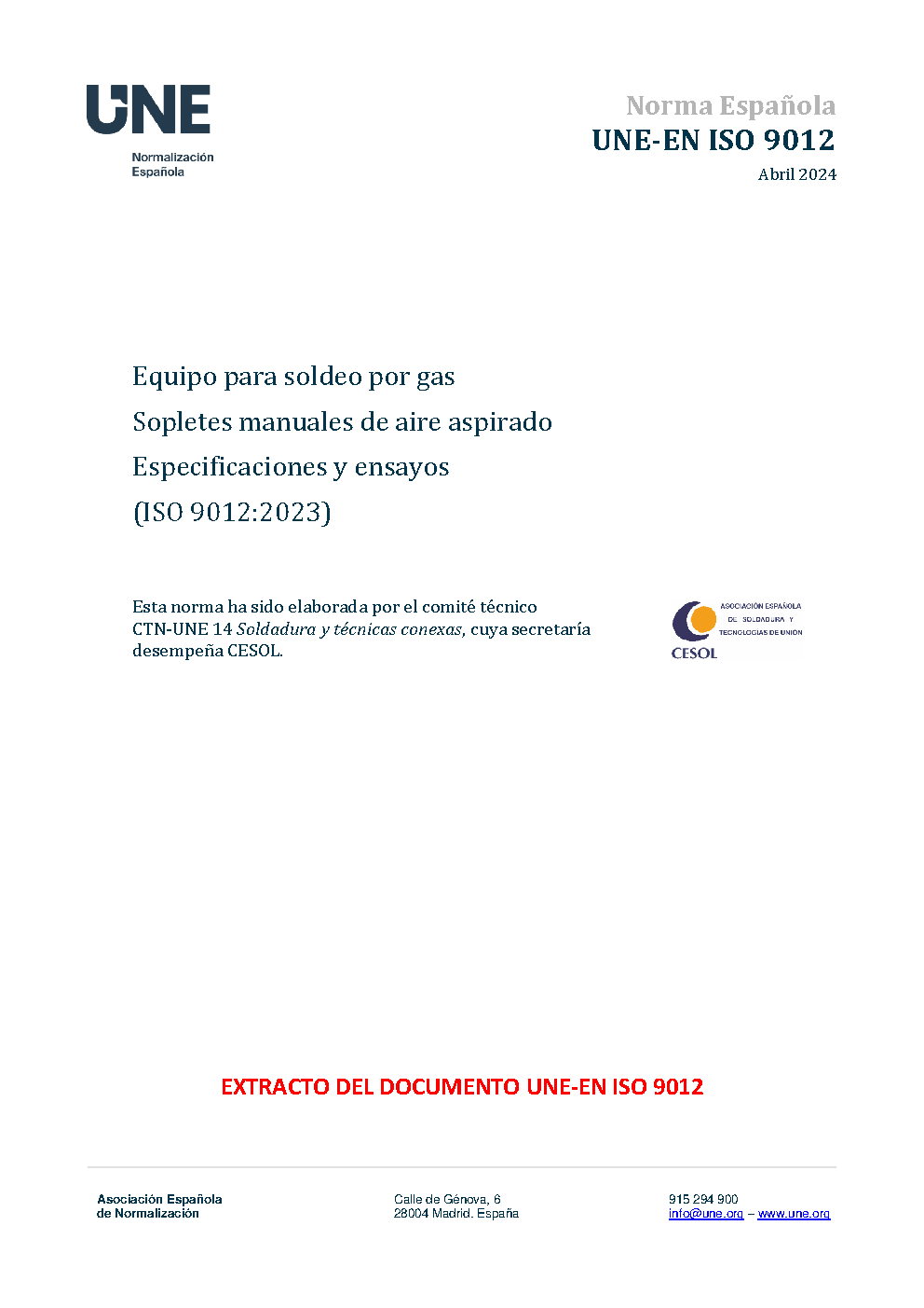 UNE-EN ISO 9012:2012