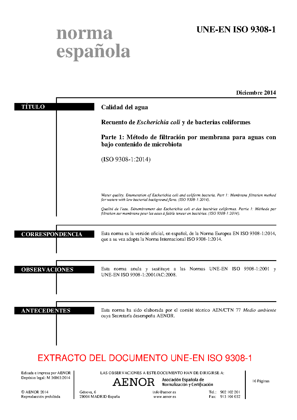 | Publisher | Asociacion Espanola de Normalizacion y Certificacion (AENOR) |