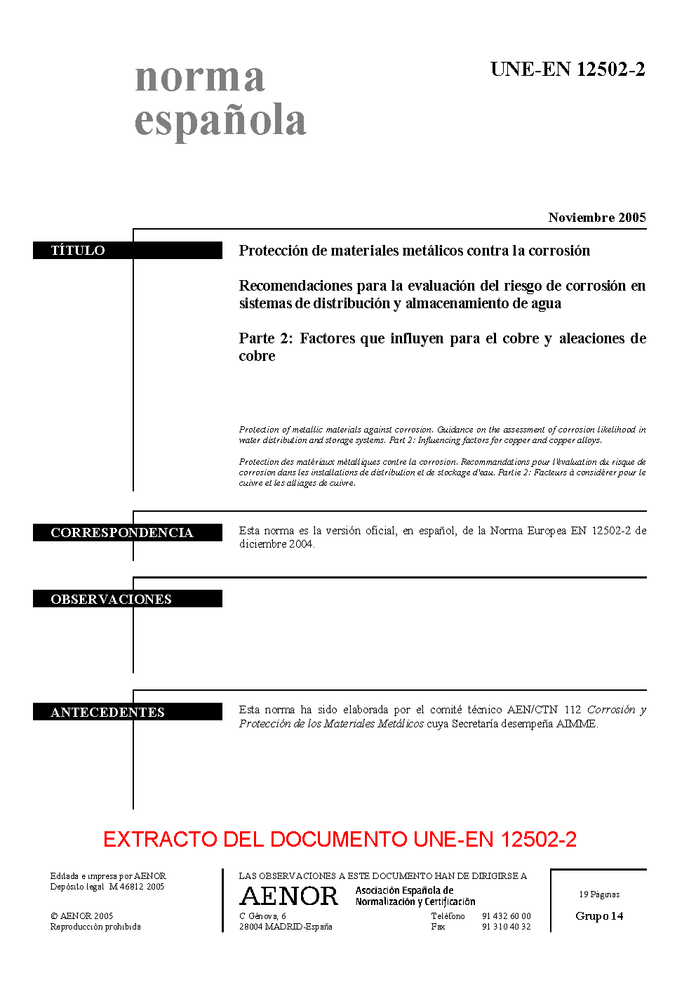| Publisher | Asociacion Espanola de Normalizacion y Certificacion (AENOR) |