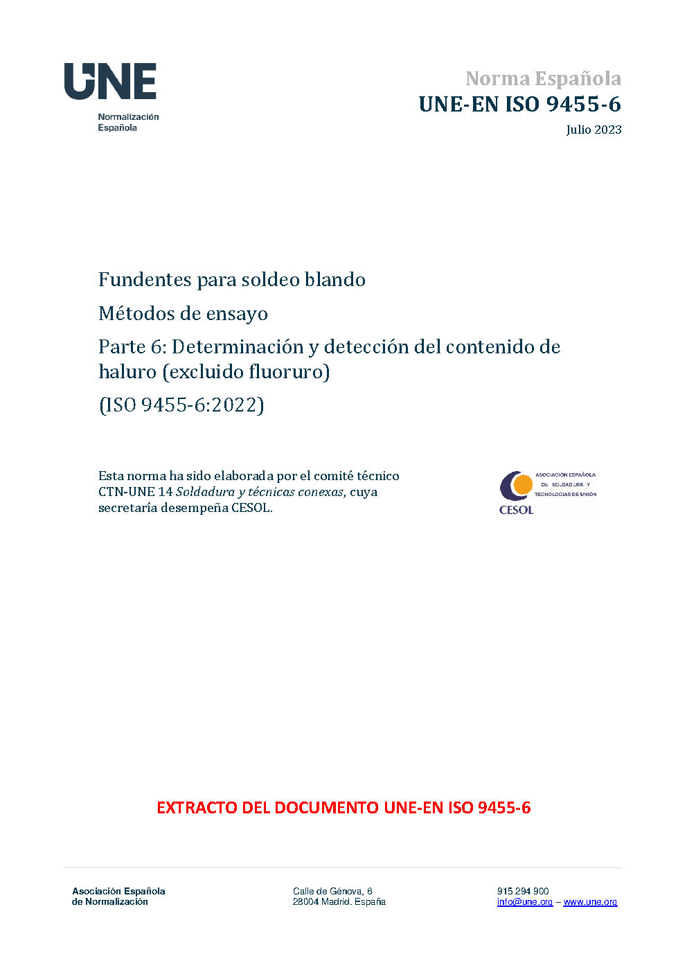 | Publisher | Asociacion Espanola de Normalizacion y Certificacion (AENOR) |