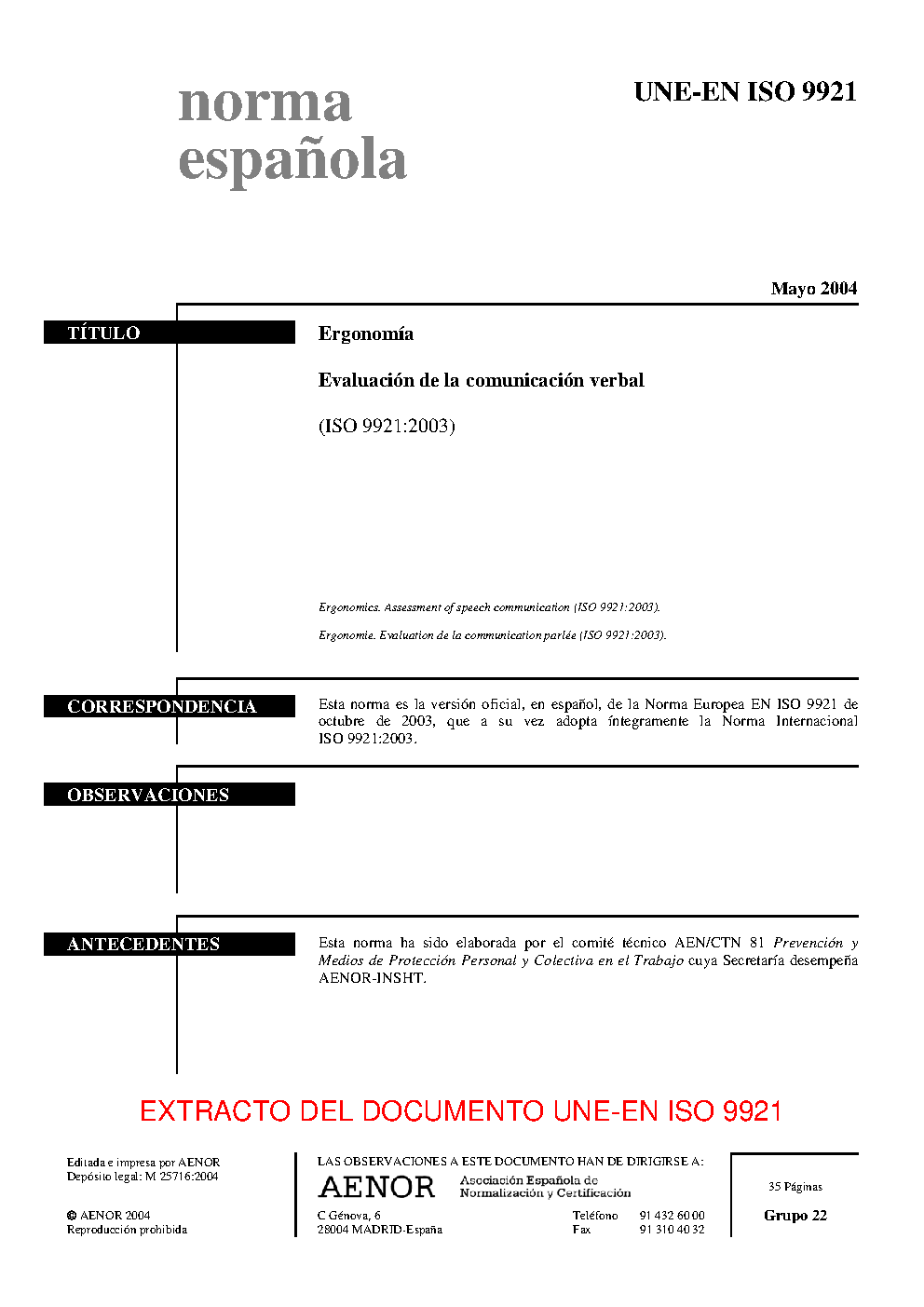 | Publisher | Asociacion Espanola de Normalizacion y Certificacion (AENOR) |