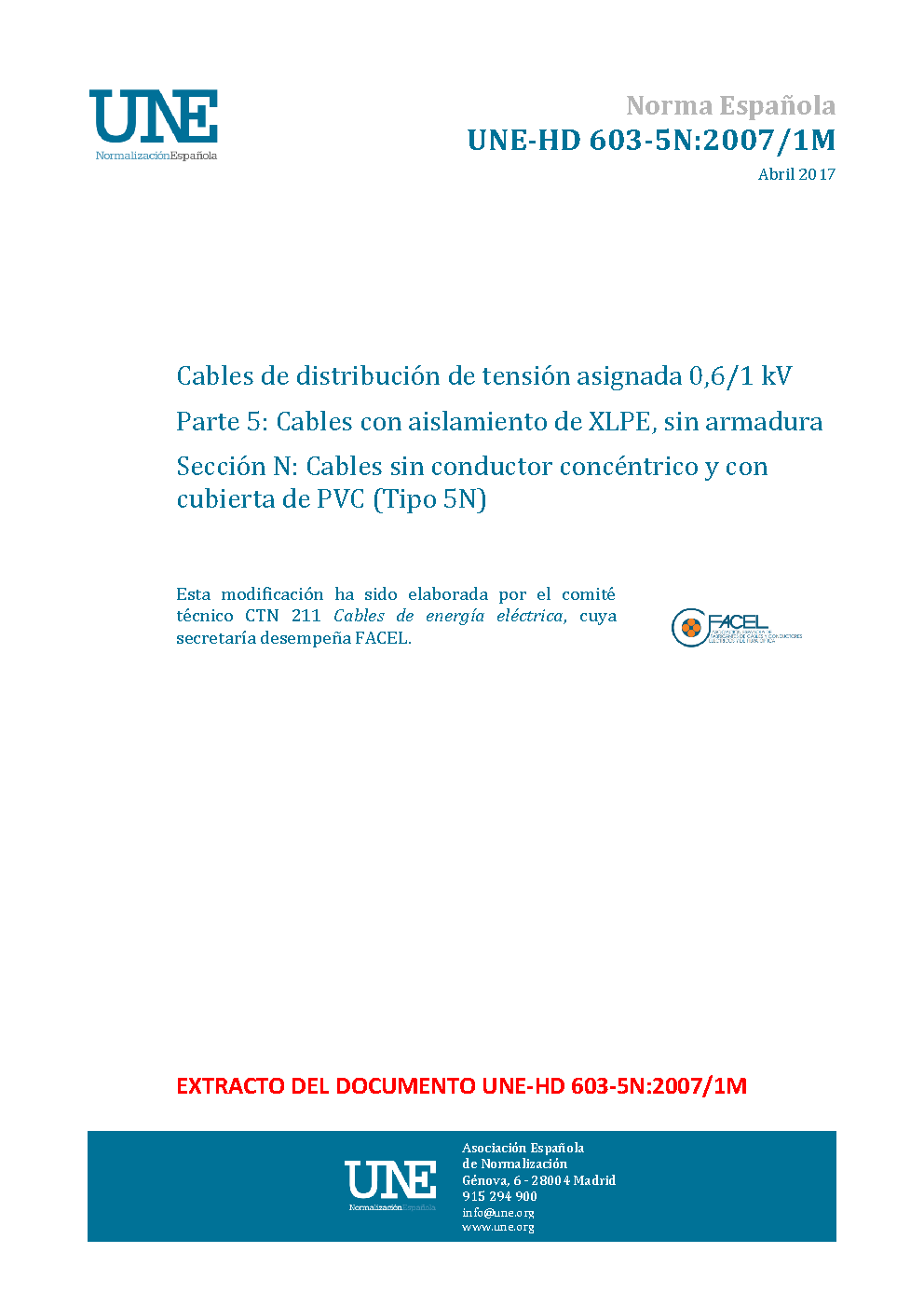 UNE-HD 603-5N:2007/1M:2017