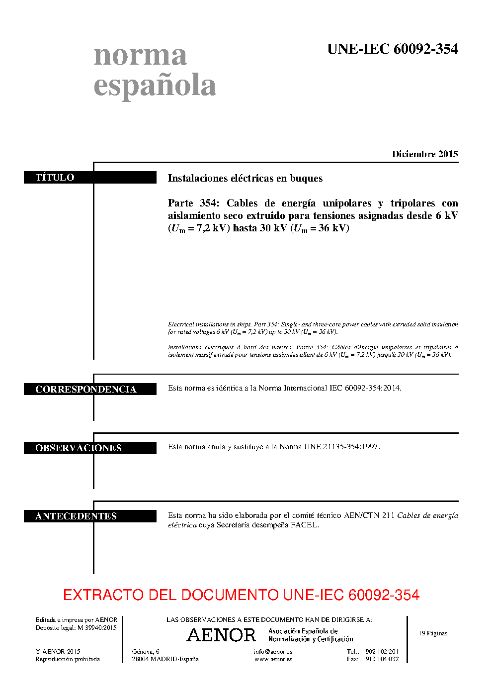 UNE-IEC 60092-354:2015