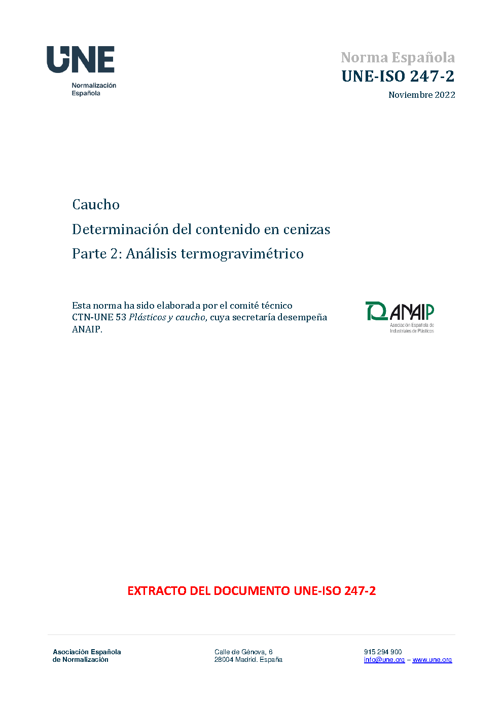 | Publisher | Asociacion Espanola de Normalizacion y Certificacion (AENOR) |