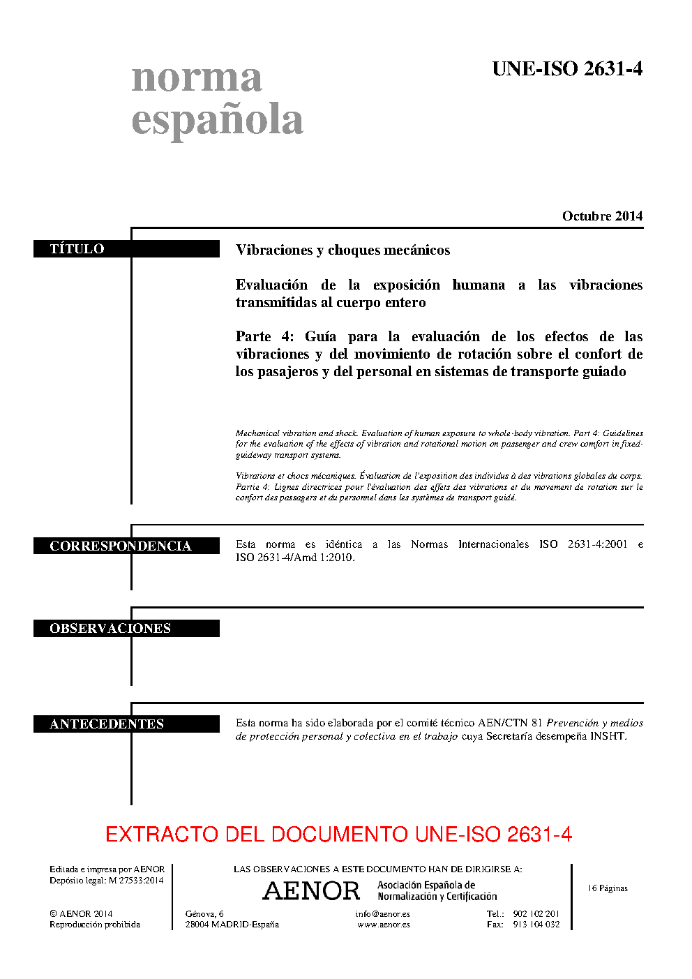 | Publisher | Asociacion Espanola de Normalizacion y Certificacion (AENOR) |