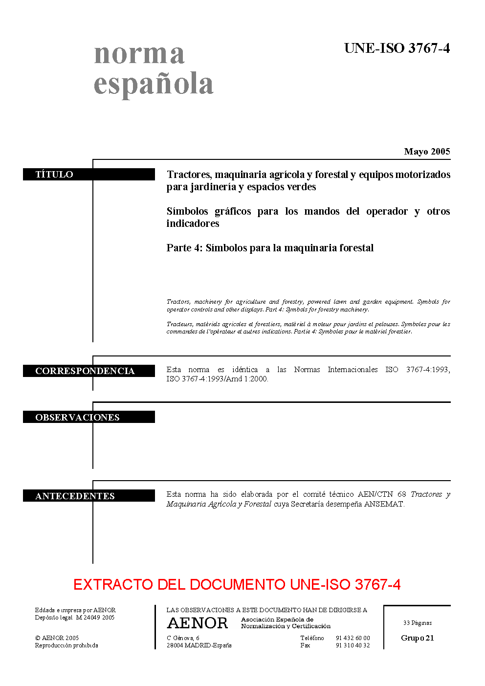 UNE-ISO 3767-4:2005
