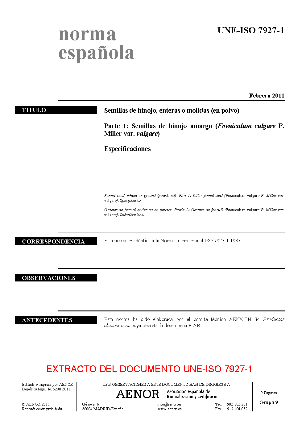 | Publisher | Asociacion Espanola de Normalizacion y Certificacion (AENOR) |