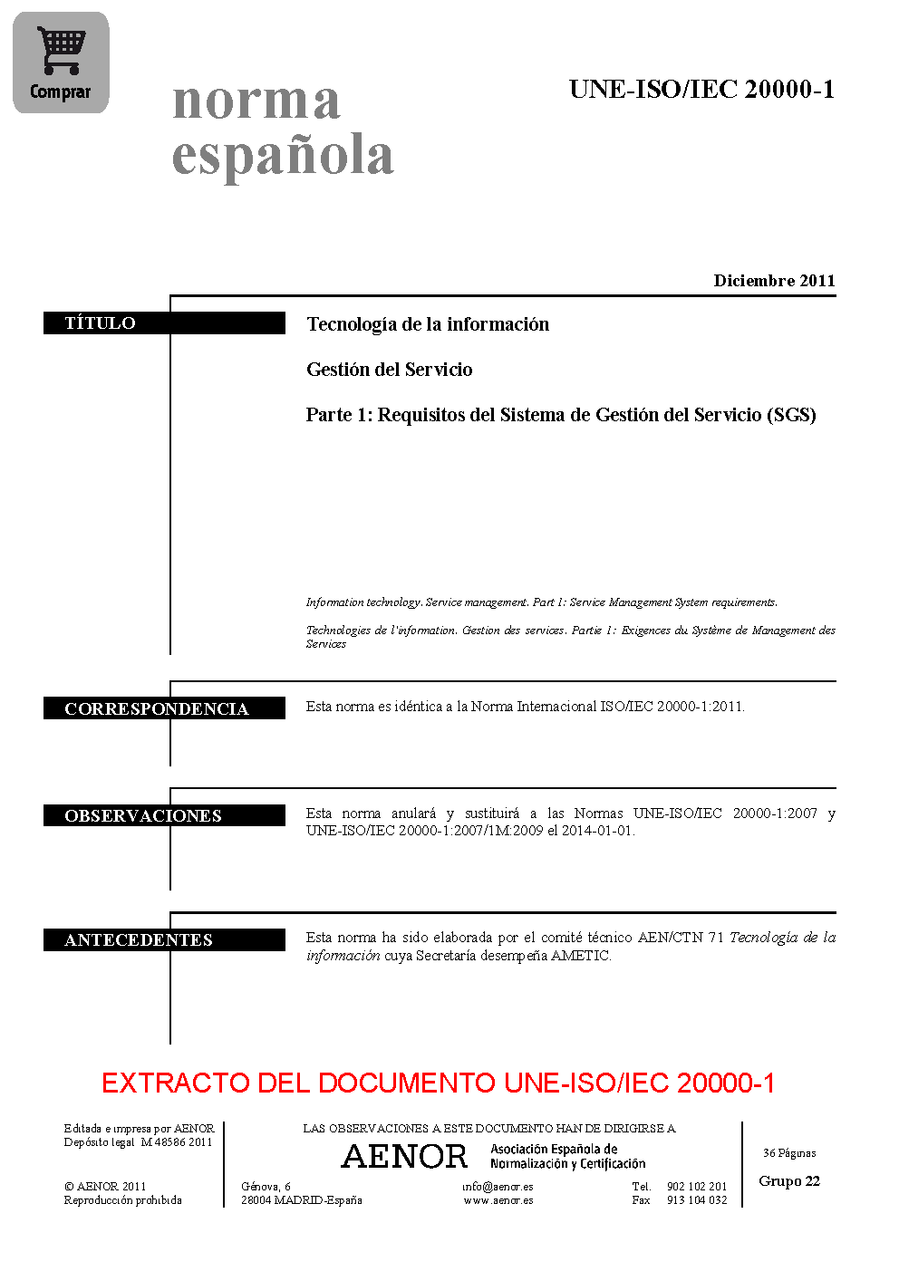 | Publisher | Asociacion Espanola de Normalizacion y Certificacion (AENOR) |