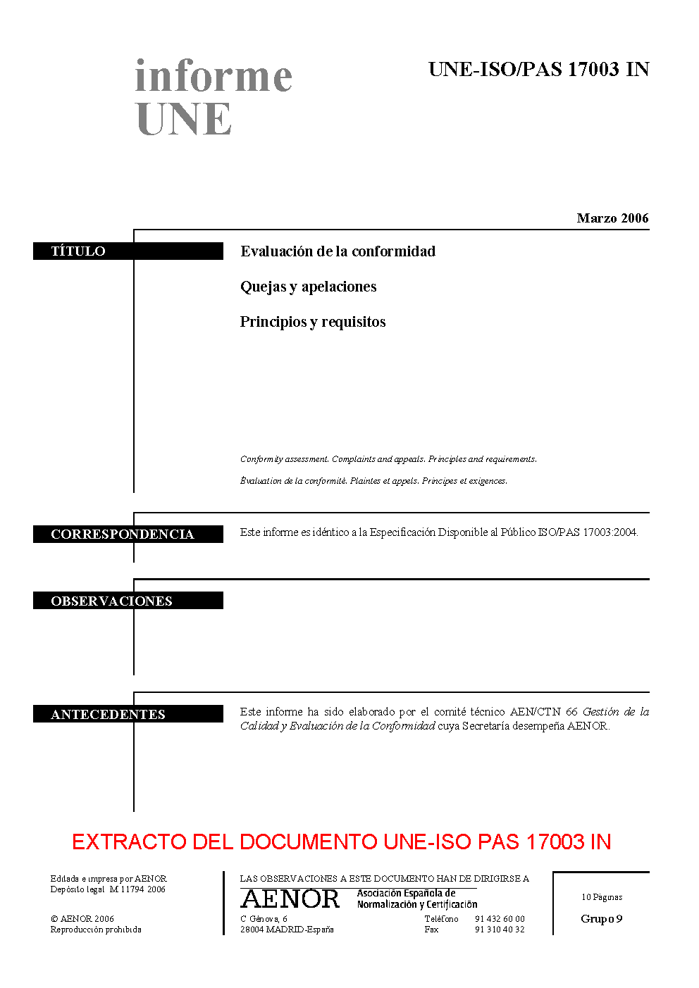 UNE-ISO/PAS 17003:2006 IN